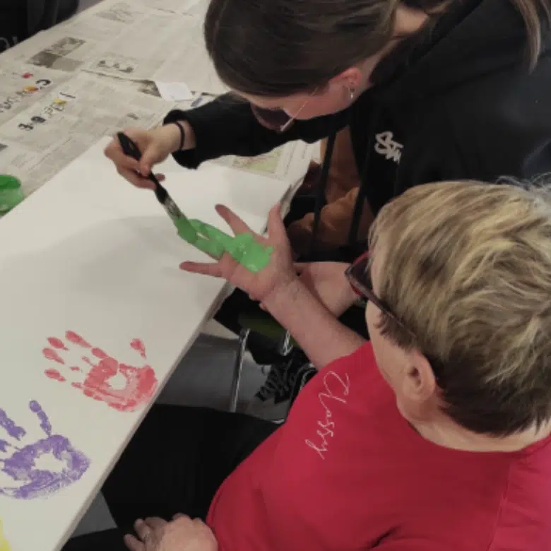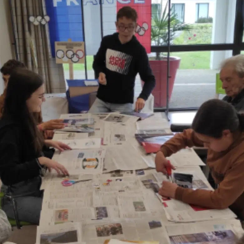 Régulièrement, sur des temps de vie scolaire (TVS), les élèves volontaires participent à des temps d’échanges, de jeux et de partage avec les résidents de l’EHPAD de la Chesnardière. De moments simples où chacun (e) apporte à l’autre.